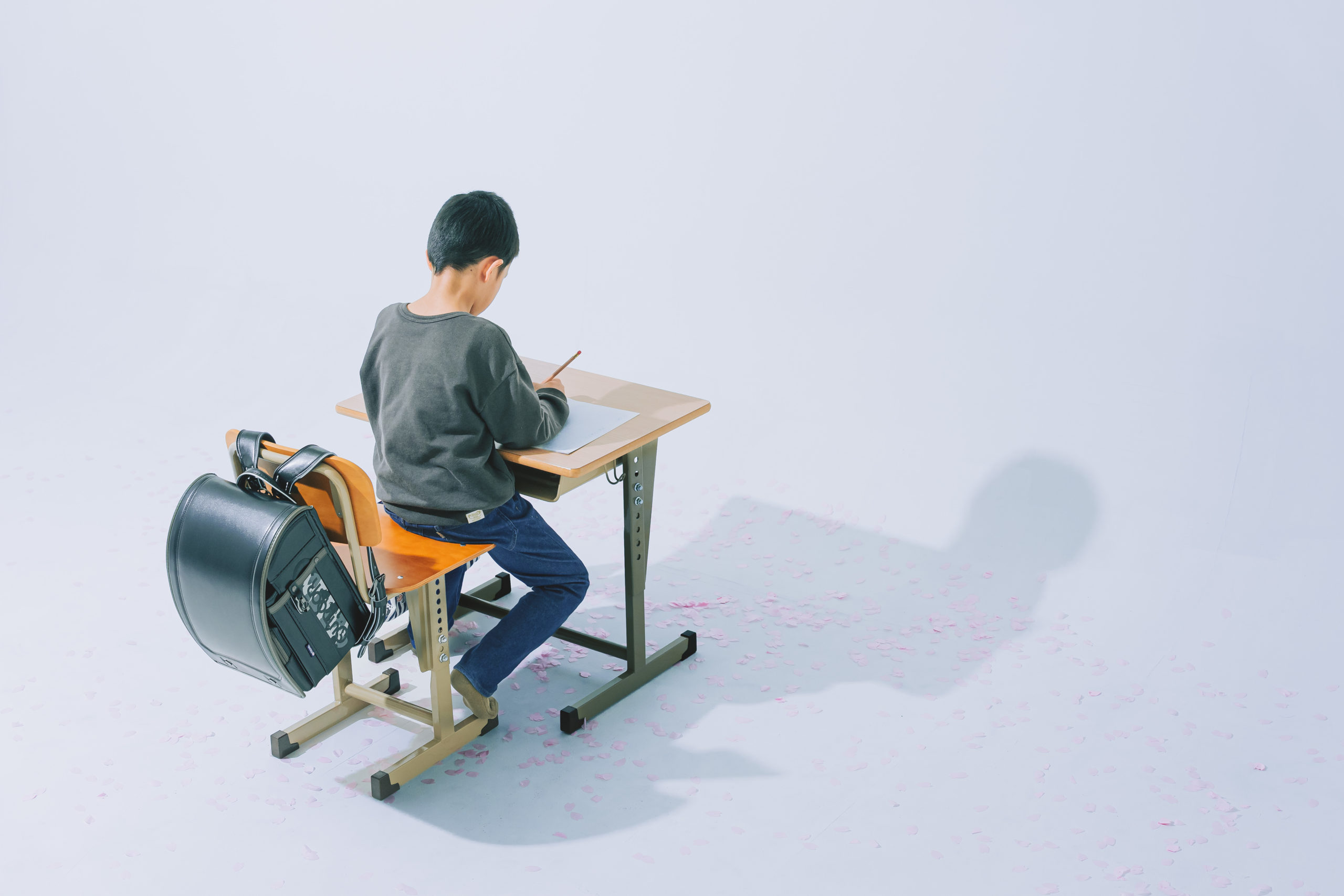 私たちが用意したのは、豪華なセットでも、カラフルな背景でもありません。 そこに置いたのは、「本物の小学校の机」です。